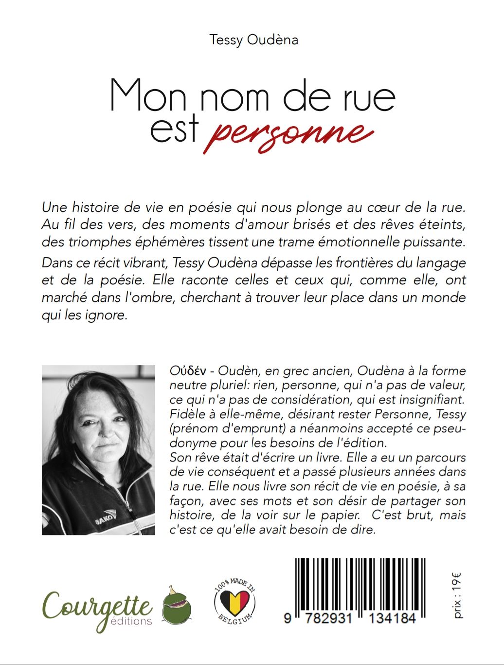 Une histoire de vie en poésie qui nous plonge au cœur de la rue. Au fil des vers, des moments d’amour brisés et des rêves éteints, des triomphes éphémères tissent une trame émotionnelle puissante. Dans ce récit vibrant, Tessy Oudèna dépasse les frontières du langage et de la poésie. Elle raconte celles et ceux qui, comme elle, ont marché dans l’ombre, cherchant à trouver leur place dans un monde qui les ignore.